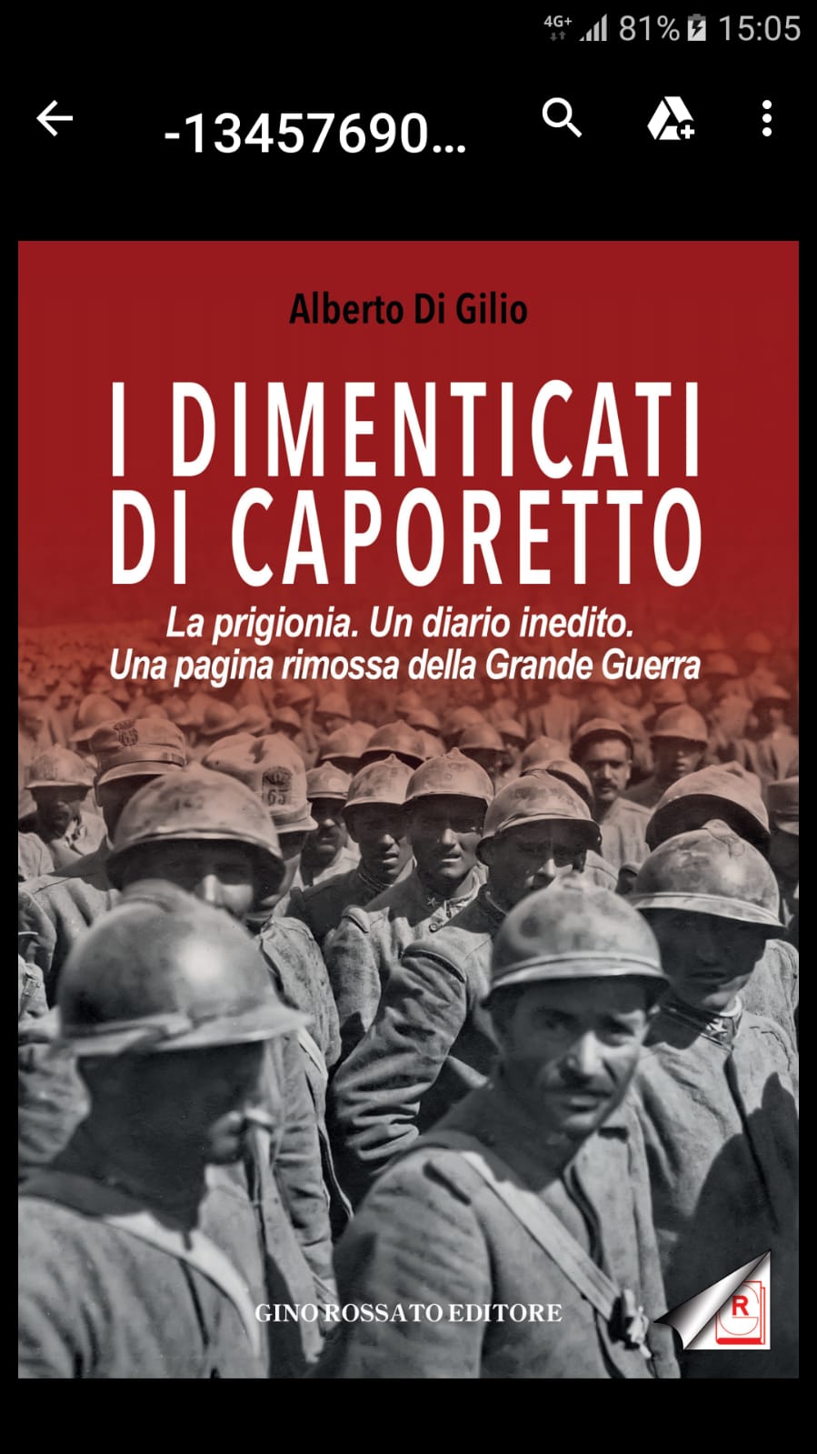 Diari e pubblicazioni 05 domenica Mag 2019 Dimensione originale su 899 × 1599 ≈ Lascia un commento Luigi Bonizzato (Alberto Di Gilio), I dimenticati di Caporetto, Gino Rossato Editore, Valdagno 2019 Condividi: Condividi su X (Si apre in una nuova finestra) X Condividi su Facebook (Si apre in una nuova finestra) Facebook Mi piace Caricamento...